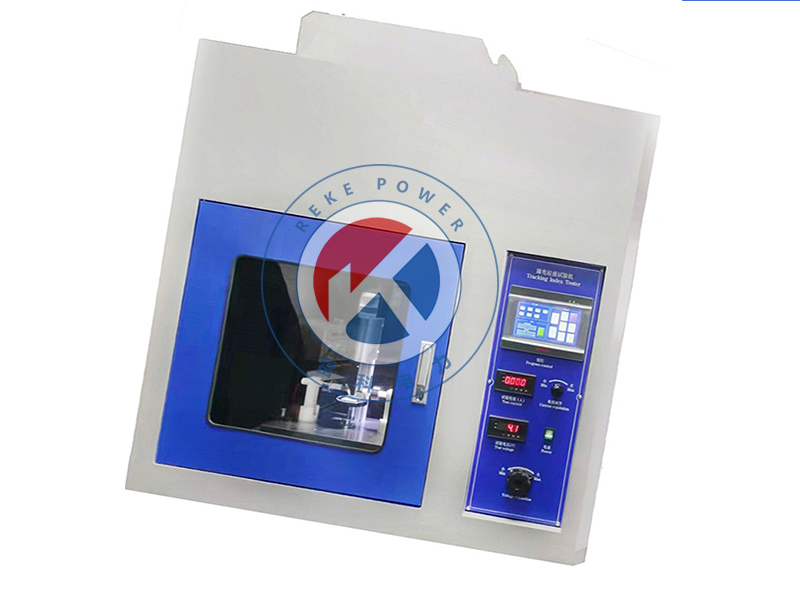 漏電起痕試驗(yàn)(電痕化指數(shù)試驗(yàn))是在固體絕緣材料表面上,在規(guī)定尺寸( 2mm×5mm ) 的鉑電極之間,施加某一電壓并定時(shí) (30s)定高度(35mm) 滴下規(guī)定液滴體積的導(dǎo)電液體(0.1%NH 4 CL) ,用以評(píng)價(jià)固體絕緣材料表面在電場(chǎng)和潮濕或污染介質(zhì)聯(lián)合作用下的耐漏電性能,測(cè)定其相比電痕化指數(shù) (CT1) 和耐電痕化指數(shù) (PT1)。